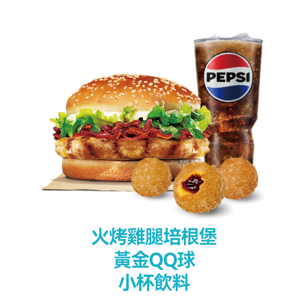 【漢堡王】火烤雞腿培根堡+黃金QQ球+小杯飲料